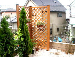 ②お隣の玄関から丸見えだったので樹脂のラティスを取り付けました。