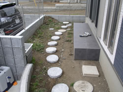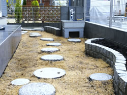 花壇と芝生の依頼がきたので、御影のピンコロを使って花壇を作り、土を入れ替えて芝生を張りました。