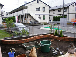 | ①施工前 | ②ショコラのレンガを使って花壇完成 |