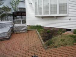 レンガの依頼を頂きました。 敷き方はへリンボンボンドにしました。 前面に敷き詰めて赤レンガで花壇を作りました。 イタリア風に仕上がりました。
