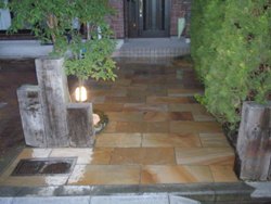 HPの更新をやっていただいてる(株)パソルームさんのスタッフのお宅をやらせていただきました。 花壇はサワンの黒ピンコロを使用して通路にわインド砂岩をストレッチャー敷きにしてセンサーライトを埋め込みました。