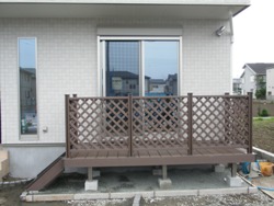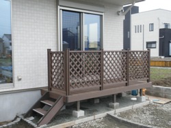 TOEXの木の樹Ⅲ(木樹脂デッキ)を造りピンコロで駐車場のデザインを設けました。