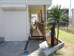 門柱には中古の枕木を使用して、そこにインターホンと門燈を取り付けました。