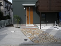 外構工事の依頼を頂きました、今回はアプローチに乱形石を張り詰め