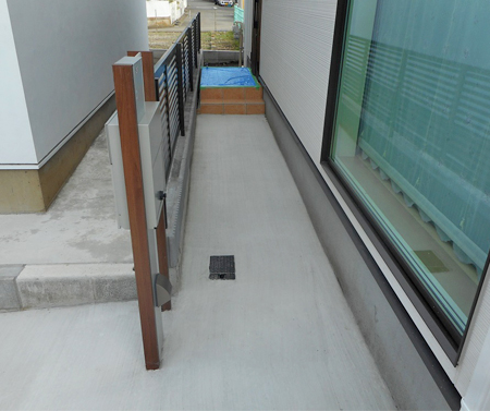 駐車場2台分と化粧ブロックメッシュメンス機能門柱ウイルモダンです。