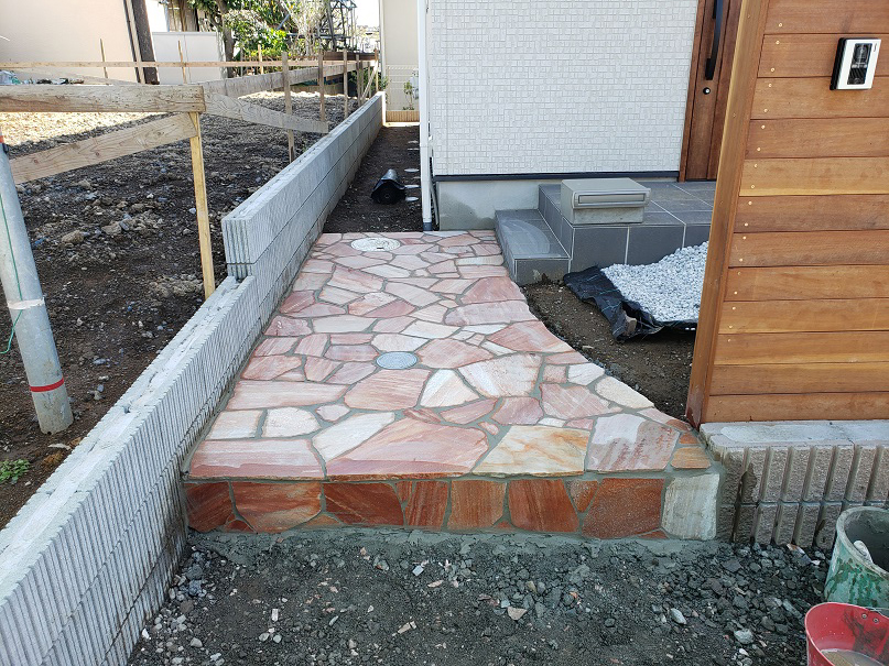 今回は耐久性の強いウリン材で門柱とウッドデッキを作りました。
