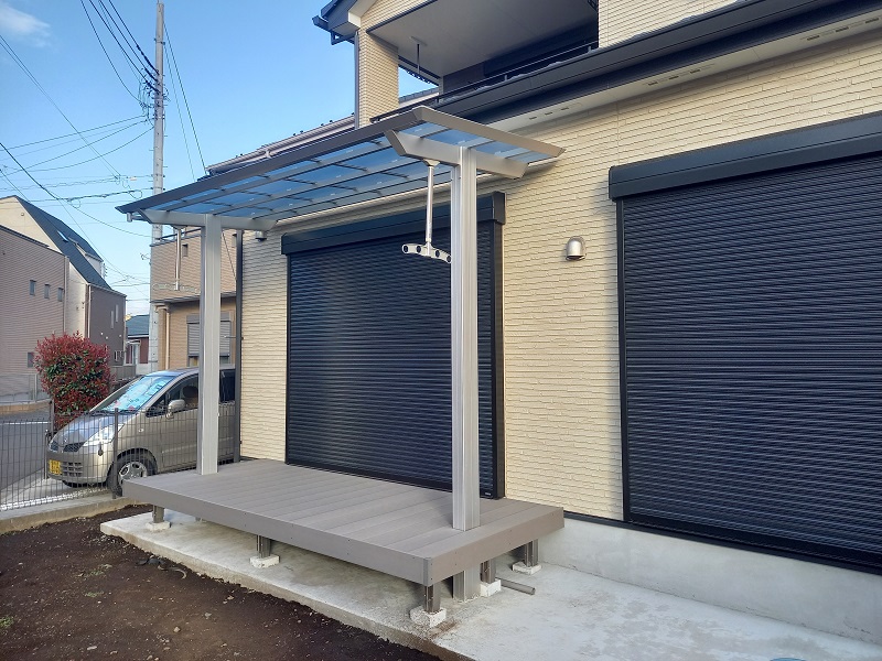 庭には人工木の樹ら楽ステージでウッドデッキを作り屋根材にテラスVBを取り付けました。