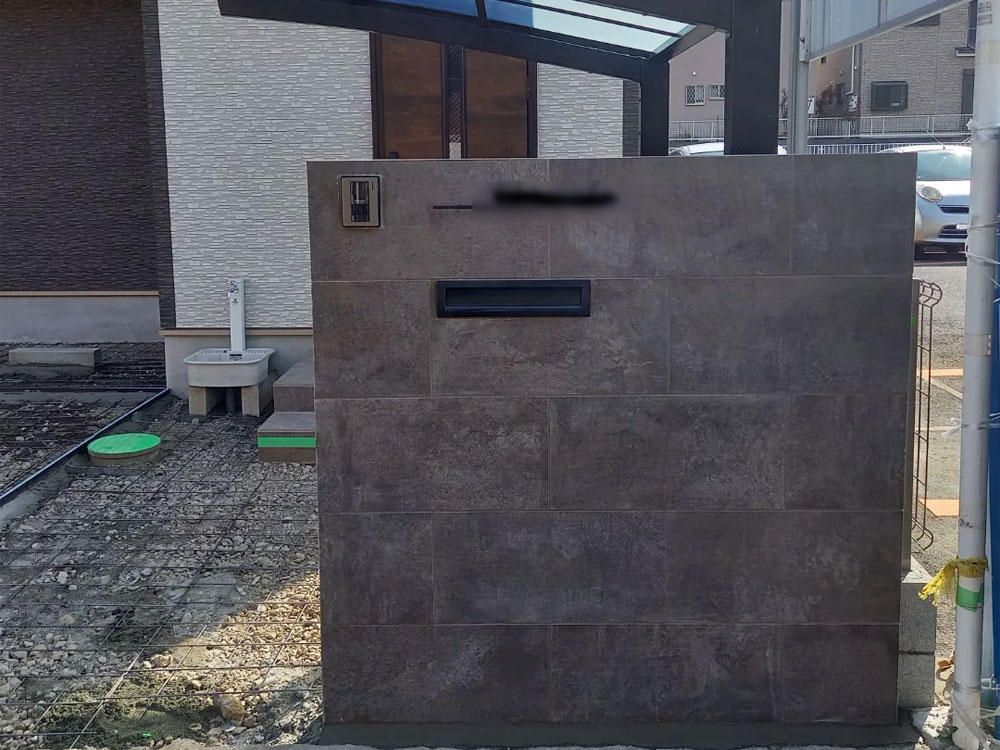 外構工事の依頼をいただきました。 境界にブロックを積み、メッシュフェンスを取り付けました。 お客様の希望でサイクルポートを作り、門柱にはタイルを張り詰めました。