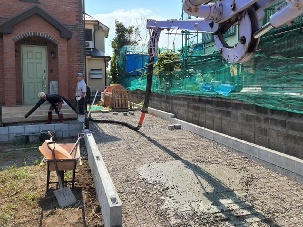 外構工事の依頼をいただきました。 車が乗るので下地にコンクリートを打設して全面にレンガを張りました。 家もレンガ調なのでイタリアの街並み風に仕上がりました。