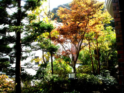 | ⑤別の角度から撮影しました。 | ⑥建物側から撮影したものです。 移植した木の周りが淋しかったので、 カンツバキを植えてみました。 |