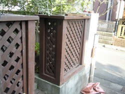 ウッドフェンスの依頼を頂きました。 年数がたっていたので木材が腐っていました。 今回は30年もつと言われているイペ材で造り直しました。